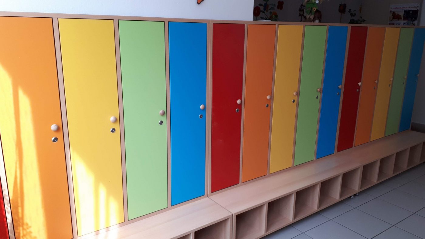 A Bambi 2 öltözőszekrény vidám színeivel kellemes látványt nyújt gyermeknek és felnőttnek egyaránt. A már megszokott nyitott öltözők helyett a végig ajtóval ellátott szekrényükben a gyerekek kisebb titkaikat is jól el tudják rejteni társaik elől.
