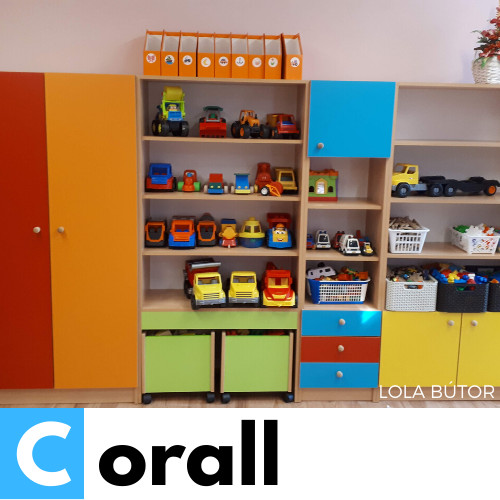 A Corall óvodai szekrénysor tökéletesen illik minden csoportszobába. A csoportszoba szekrények feladata a játékok tárolása úgy, hogy a gyerkőcök is könnyen hozzáférjenek azokhoz a játékokhoz, amivel a legtöbbet játszanak. De nem csak a gyermekek játékai helyezhetőek el a szekrény polcain és tárolóiban, hanem a kíváncsi, fürkésző tekintetek elől jól elkülöníthetőek azok a fontos dokumentumok, melyek nagy szerepet kapnak egy csoport életében.